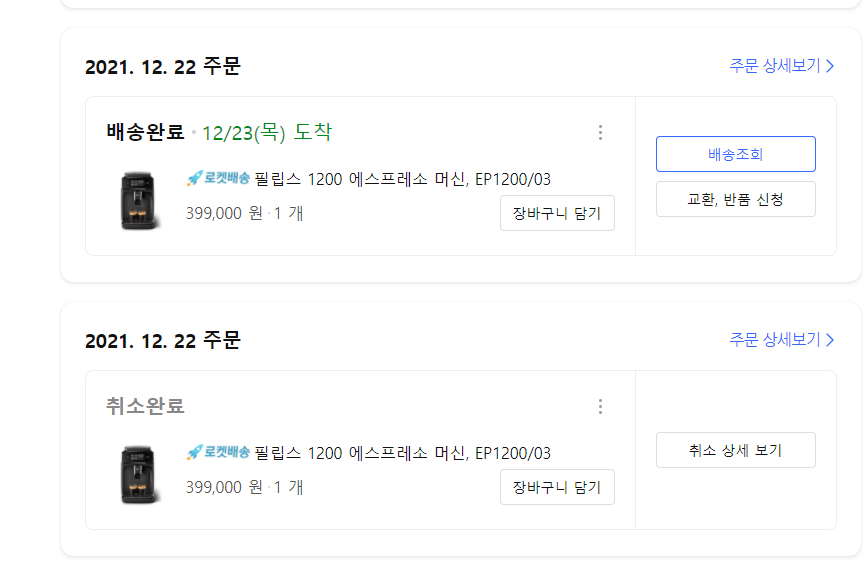2021~현재 까지도 현재 전자동 커피머신 판매량 1위고 매번 품절되는 필립스 1200 전자동 커피머신 입니다.