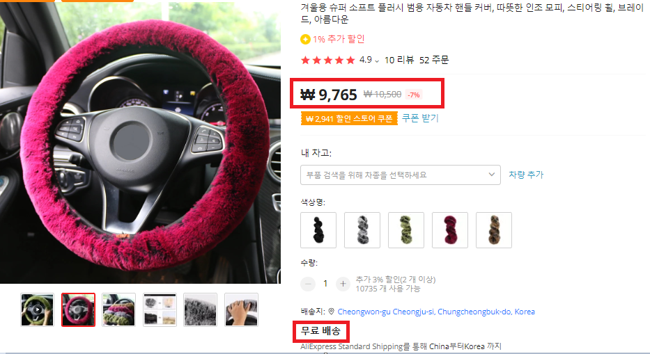 저는 배송료가 아까워서 자동차에 열선 핸들이 없어 핸들이 차가운 지인들과 어머님껏과 함께 구매했어요!