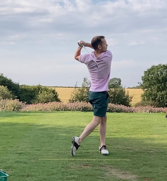 약간의 팁은 백스윙의 첫 번째 부분 동안 오른쪽 팔꿈치를 옆구리에 가깝게 유지하는 것이 팔이 회전하고 몸에 가깝게 유지되도록 도와줍니다. 보다 자세한 가이드는 백스윙에 대한 이 최종 가이드를 참조하십시오.