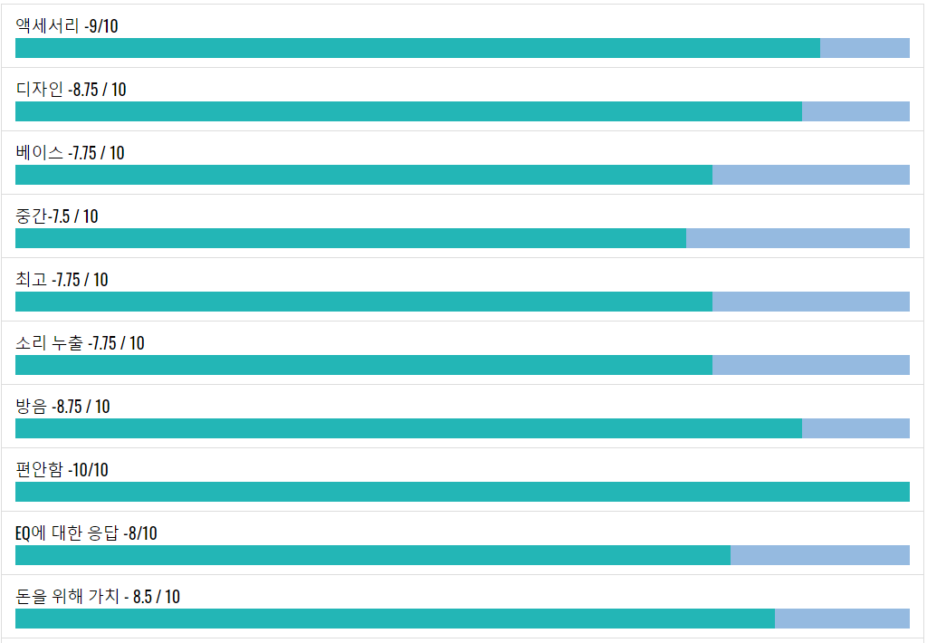 이 이어폰은 매우 맑은 고음을 제공하지 않지만 중음, 부드럽고 부드러운 고음 및 고음 범위를 제공합니다.