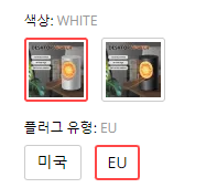 그리고 구매하실때 주의사항! ★★꼭 EU 콘센트 옵션을 설정해야 한국에서 사용이 가능합니다.