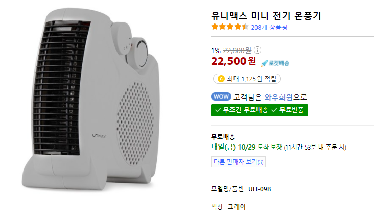 저는 쿠팡에서 유니맥스 전기 온풍기(2만원대)와 알리익스프레스 직구발 온풍기 1만원대 제품을 구매했습니다.