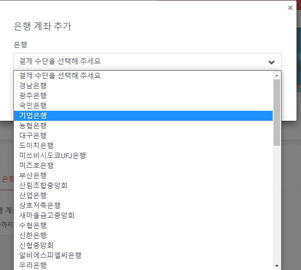 은행추가 버튼을 누르고 자신이 받고 싶은 은행을 선택해 주세요!