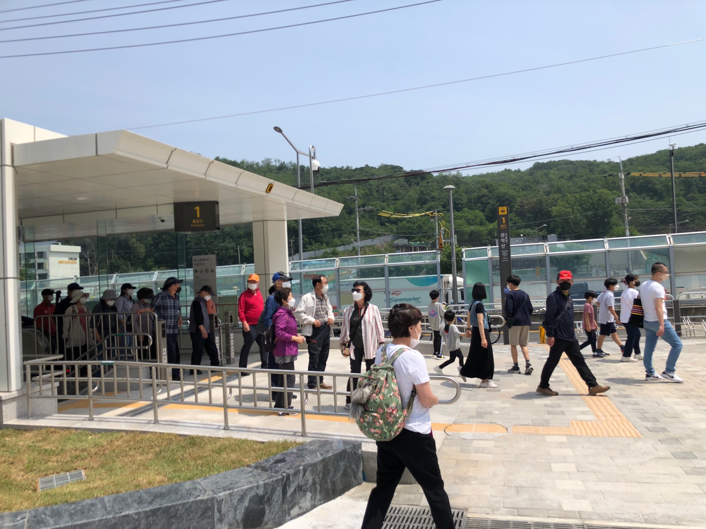 평일엔 배차간격이 4분이며 주말엔 7분 간격으로 경전철이 계속 들어오고있습니다.