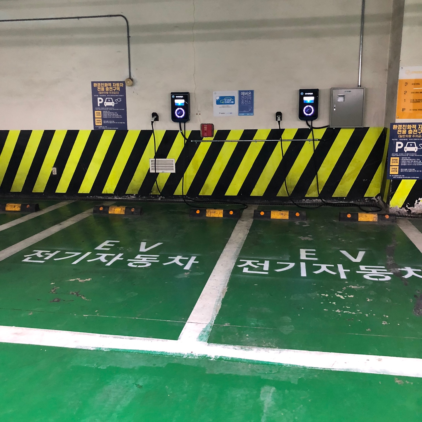 생각보다 넓은 주차공간입니다. 그리고 전기차 전용 충전공간을 보시면 거의 항시 자리가 널널하게 비어있습니다.