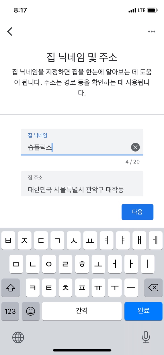 '+다른 집 만들기'도 누르면 오른쪽 화면처럼 나옵니다. ' 집 닉네임' 적고 집주소도 적어 주시면됩니다.