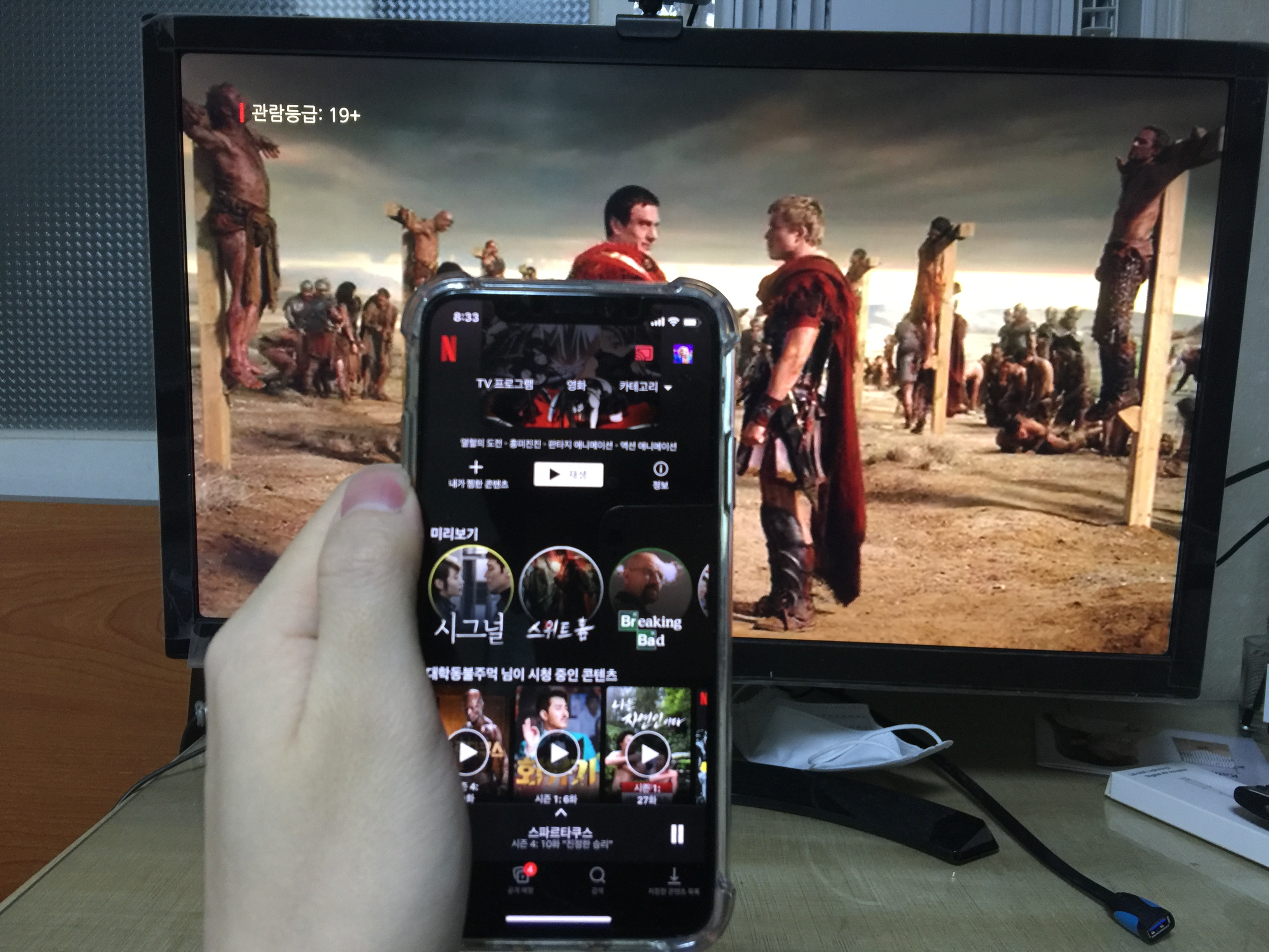 넷플릭스빠 인증샷... 언제 어디서든 티비에 연결해서 보려고 애플 디지털 AV 라이트닝 어댑터