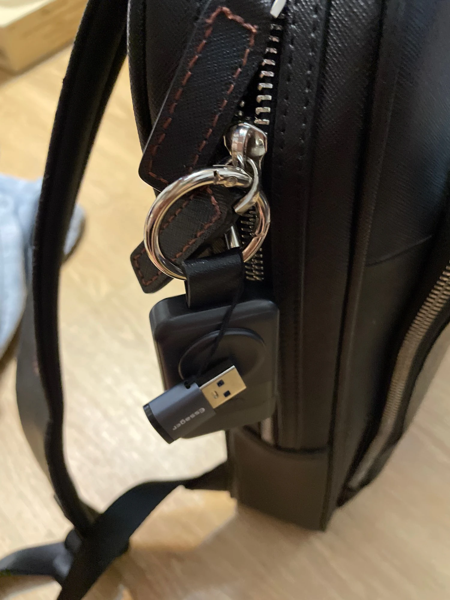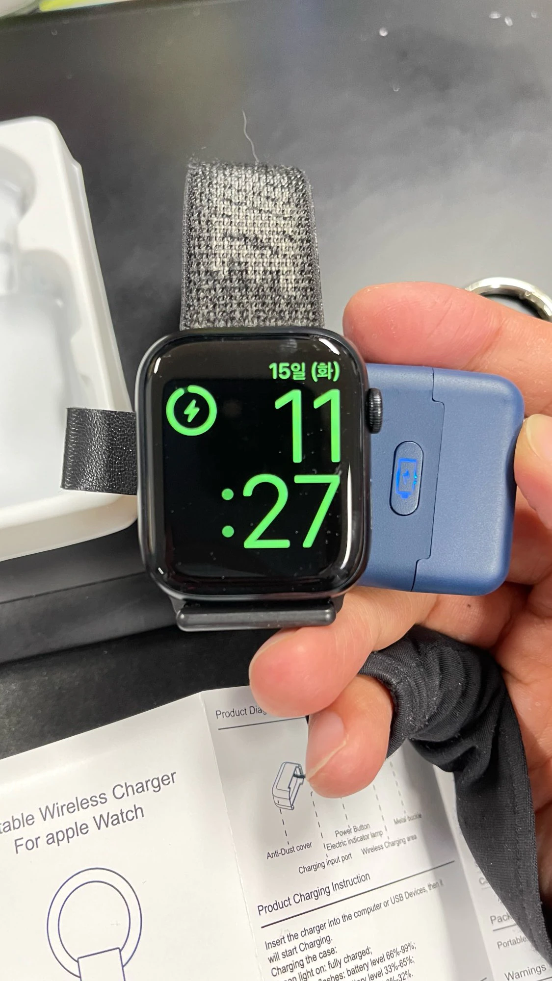 저같은 경우 애플워치 휴대용 무선 충전기를 가방에 걸어두고 사용합니다.