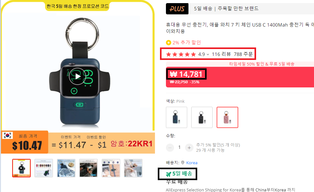 물론 가장 좋아던 제품은 알리익스프레스에서 imou로봇청소기가 1위지만 애플워치 무선 휴대용 충전기는 10위안에 들것 같네요 ㅎㅎ
