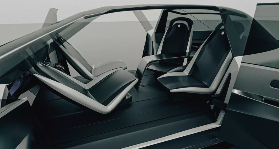 애플은 전기 자동차 스타트업 Canoo의 Lifestyle Vehicle에 등장하는 것과 유사하게 승객들이 서로 마주하는 좌석이 있는 자동차에 대한 아이디어를 가지고 놀았습니다 .