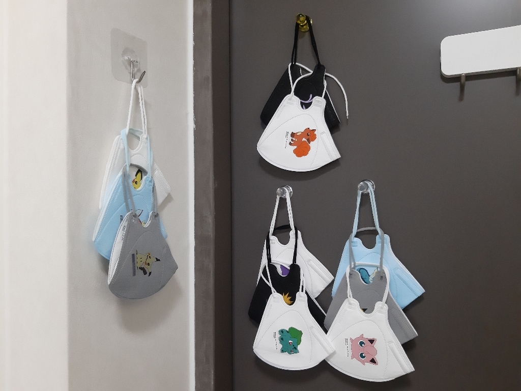이렇게 포켓몬마스크를 걸어두면 아이들이 고민하면서 고르게 하는것도 좋더라구요.