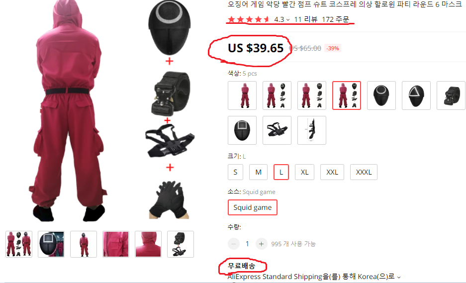 오징어게임 가면 코스튬을 찾는 사람이 많은 만큼 악질 판매자들이 너무 많더라구요