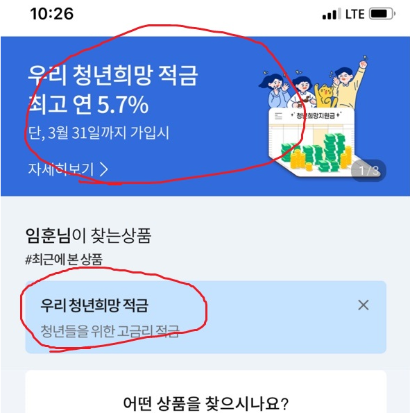③ 위에 상단에 보면 우리은행 청년희망 적금 배너 또는 '우리 청년희망 적금'을 클릭해주세요