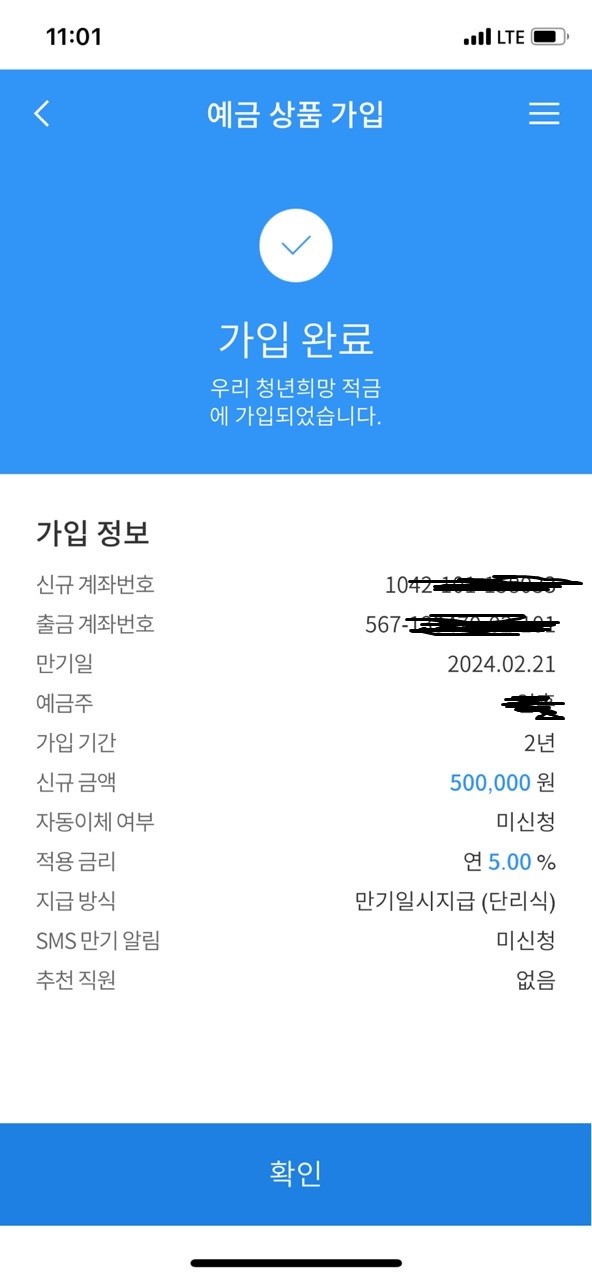 ⑩ 우리은행 청년희망적금 상품 가입완료 하기