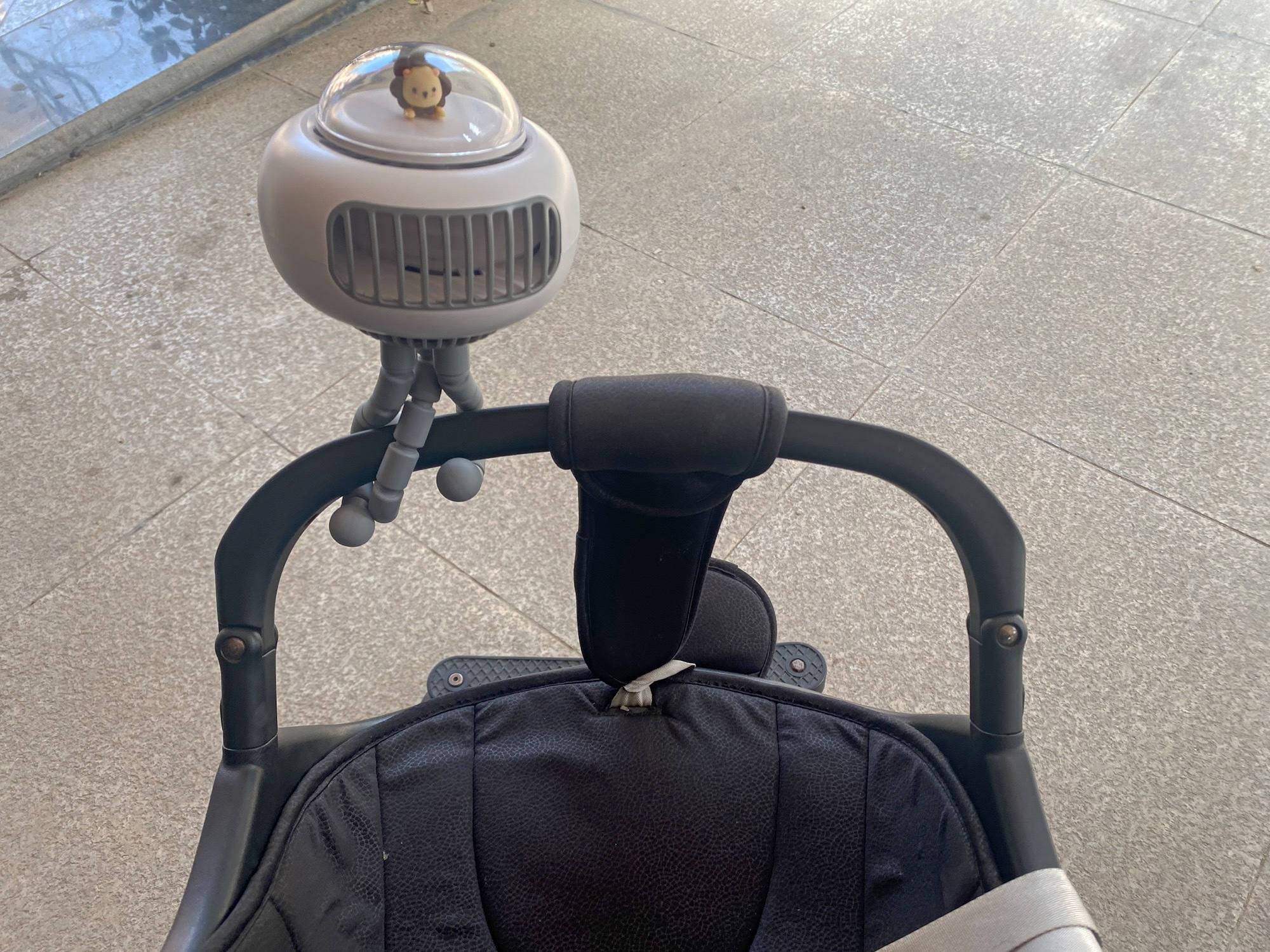 이렇게 유모차에 달아서 사용하면 야외에서 아이가 고열로 가지 않고 시원하게 유지해 줍니다.