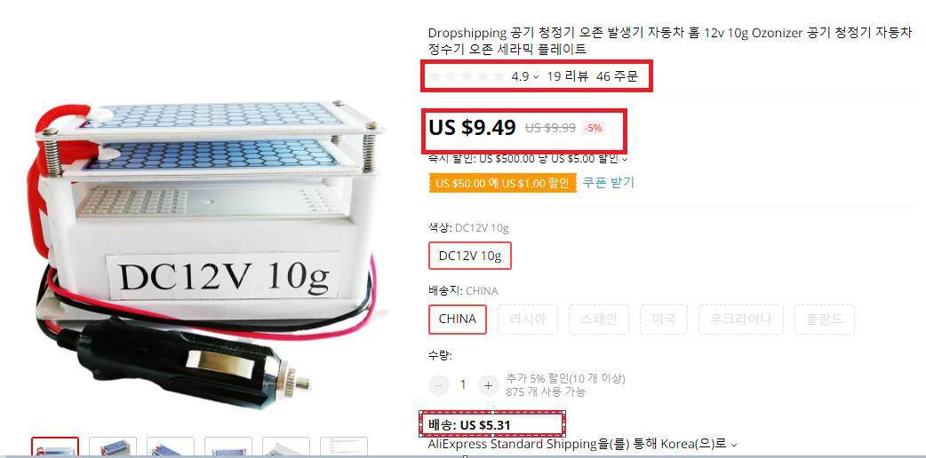 9.49US $ 5% OFF|Dropshipping 공기 청정기 오존 발생기 자동차 홈 12v 10g Ozonizer 공기 청정기 자동차 정수