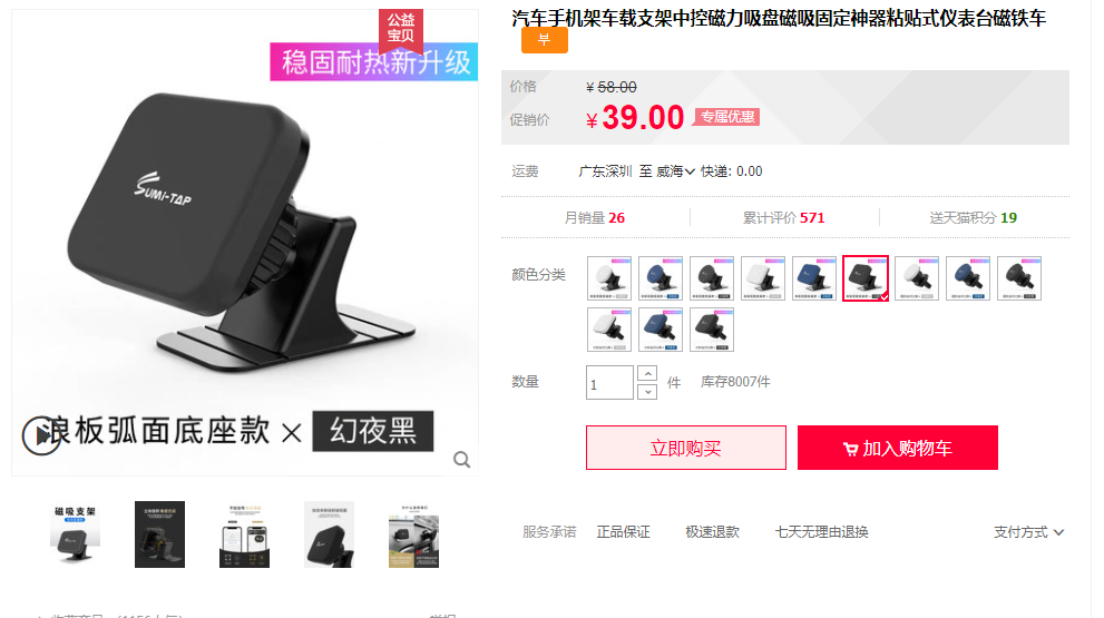 위 사진은 중국의 Taobo 라는 소매 사이트입니다. 보시면 마그네틱 거치대가 39위안 7000원으로