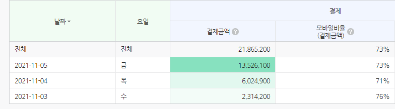 아래는 제가 구매대행 부업 같은 본업을 시작했을 때 매출이였죠