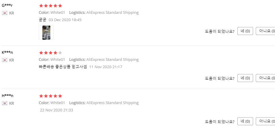 참고로 알리익스프레스 후기를 볼때 외국인은 평점 4~5개면 괜찮은 아이템이라는 뜻이에요!