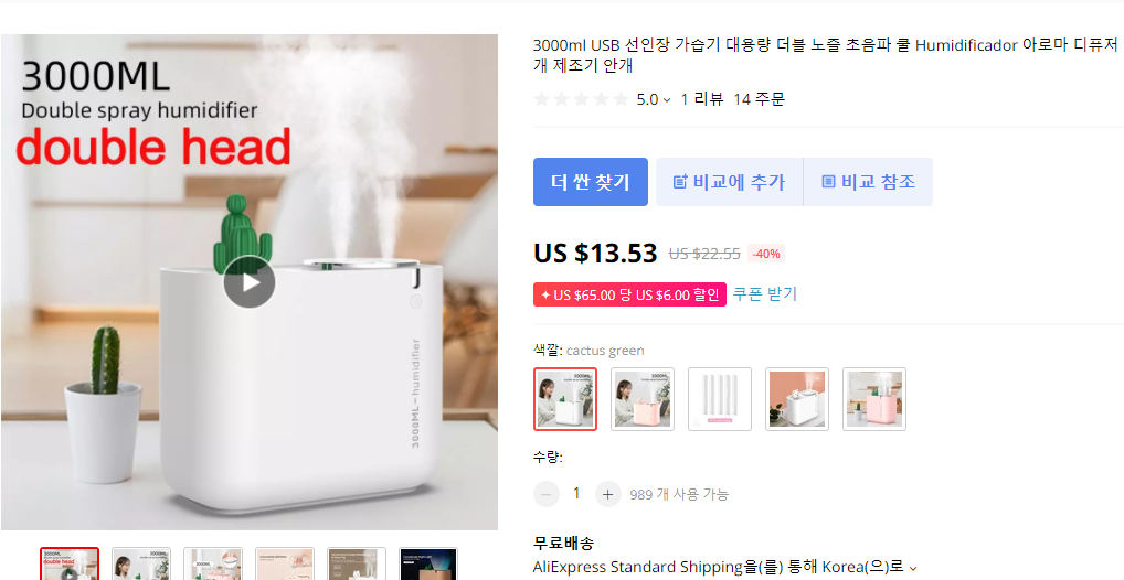 무려 13.53딸라!! 엄청 저렴쓰!!! 거기에 듀얼 가습구 있어서 가습량이 어마어마해요!!