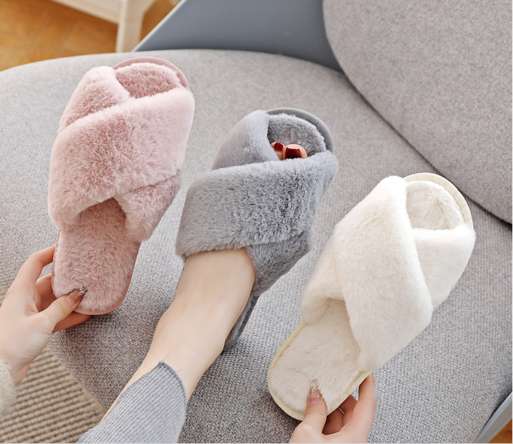 6198.0₩ 50% OFF|겨울 여성 집 슬리퍼 가짜 모피 패션 따뜻한 신발 여성 슬립 아파트 여성 슬라이드