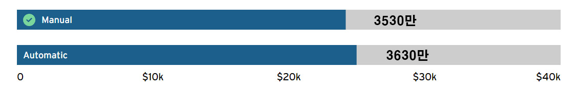 구매자가 직면하는 유일한 어려운 결정은 표준 수동 변속기를 고수할지 아니면 옵션인 8단 자동 변속기에 100만원을 추가로 지출할지 여부입니다.