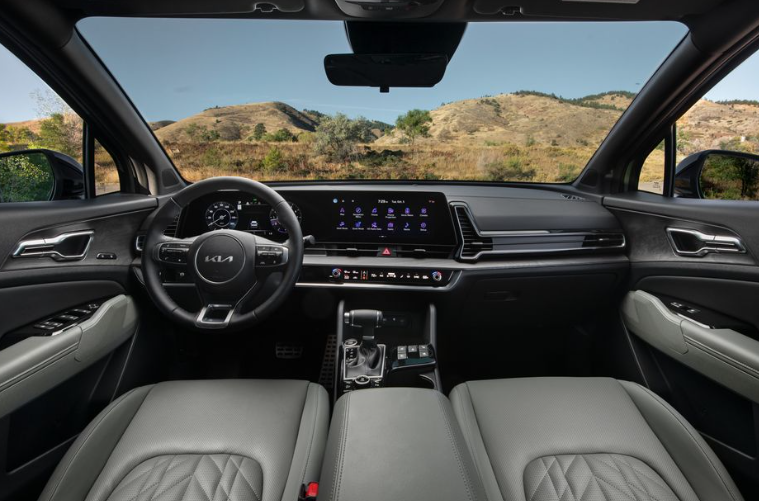 내부에서 새로운 스포티지 하이브리드는 매력적이고 거대한 대시 장착 화면을 포함하는 기술로 가득 차 있습니다.