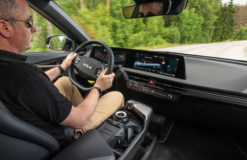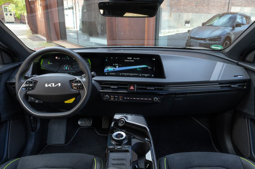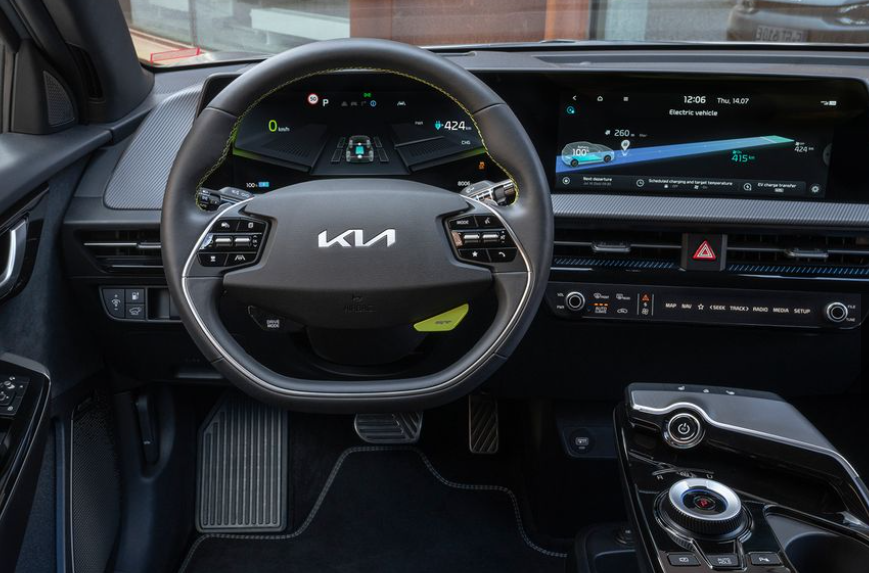 스티어링 휠의 녹색 버튼은 추진 시스템의 최대 성능을 잠금 해제하며, 이는 실제 EV6 테스트에서 제로백 3.2초 만에 가속하기에 충분할 것으로 추정됩니다.