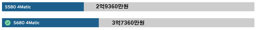 S580과 S680은 가격차이가 8000만원이 나지만 아래옵션에 큰 차이가 있습니다.