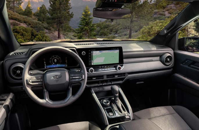 새로운 게이지 클러스터, 인포테인먼트 화면 및 스티어링 휠이 업데이트된 디자인을 완성합니다. 내부 사양은 전체 헤드룸이 마지막 픽업에 비해 1인치 감소했지만 레그룸과 어깨 공간은 거의 동일하다는 것을 보여줍니다. 새로운 2023년 모델은 또한 쉐보레가 콜로라도에서 선루프를 옵션 장비로 제공한 첫 번째 사례이기도 합니다.