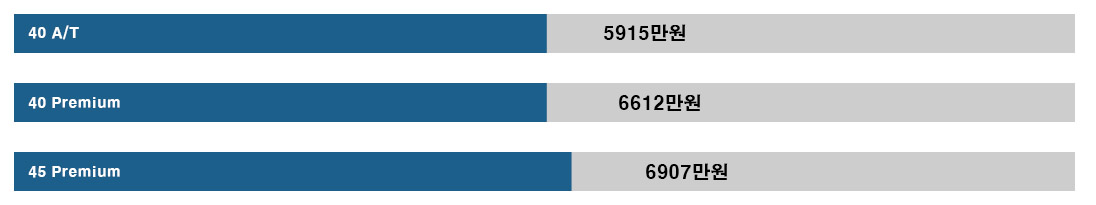 40 트림을 착용한 모델은 201마력을, 45는 261마력을 내뿜습니다.