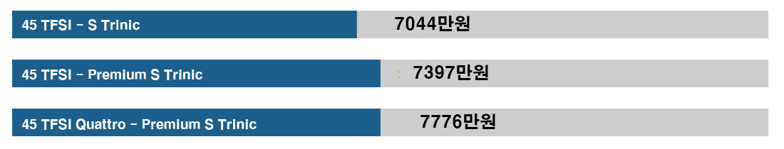 45 트림은 최하위 가격은 7044만원이며 미드레인지 트림 Premium S Trinic은 가장 괜찮은 트림으로 추천합니다.