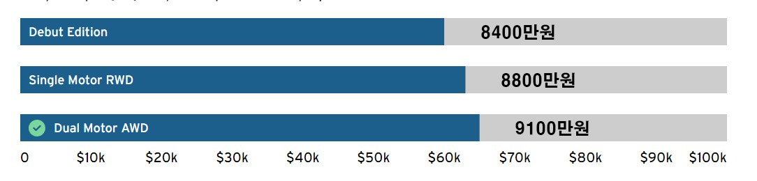 그리고 요즘 한국에는 가격차이가 1000만원 넘지 않는 이상 대부분 AWD를 트림을 선택하는게 대세이죠.