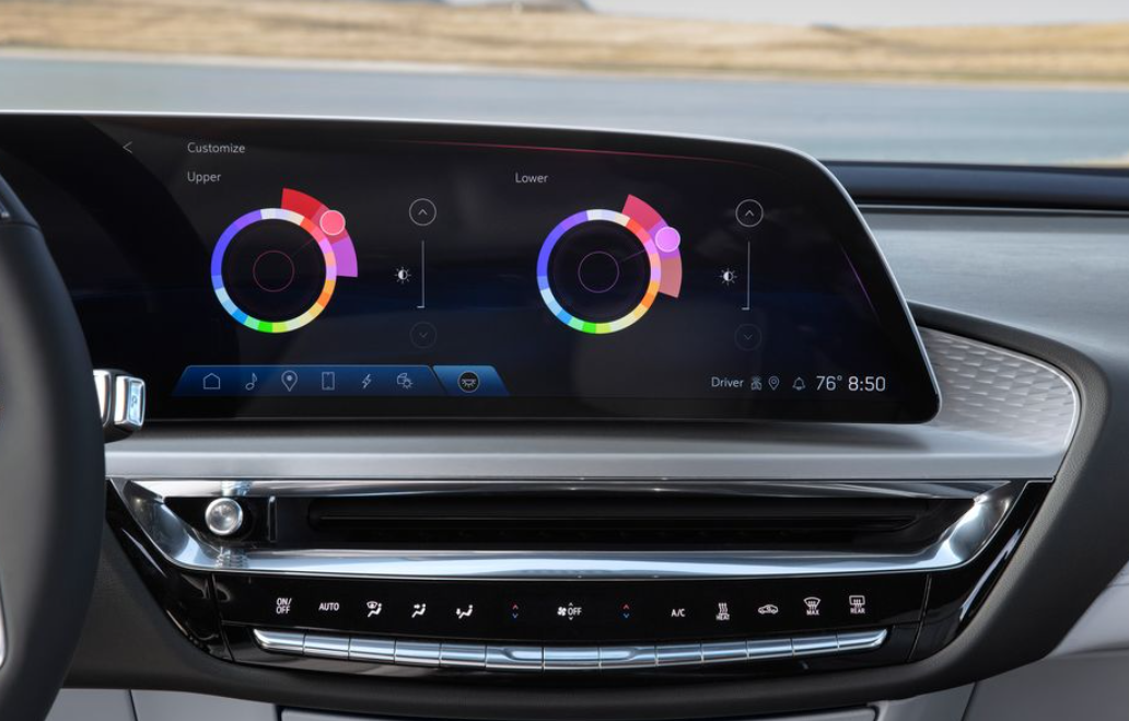 에스컬레이드와 마찬가지로 리릭의 대시보드는 SUV의 인포테인먼트 시스템과 운전자 게이지 디스플레이 역할을 하는 거대한 33.0인치 곡선 고급 LED 터치스크린이 지배합니다.