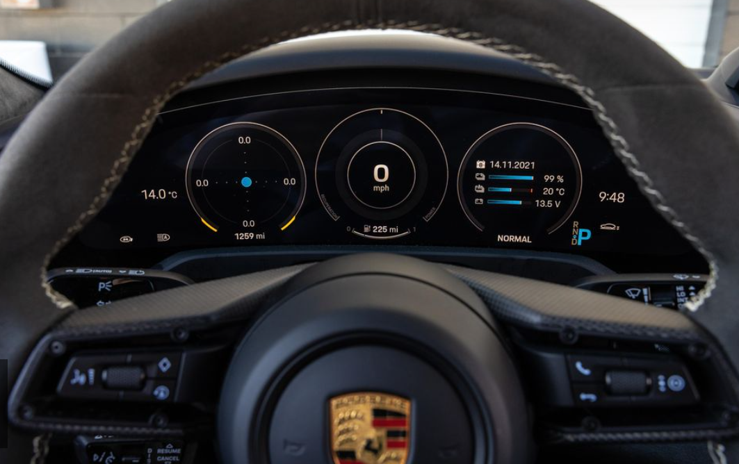 날렵해 보이는 타이칸 내부는 기술이 가득한 환경입니다. 디자인은 표면상 단순하며 다른 포르쉐 모델에서 본 것을 떠올리게 합니다.