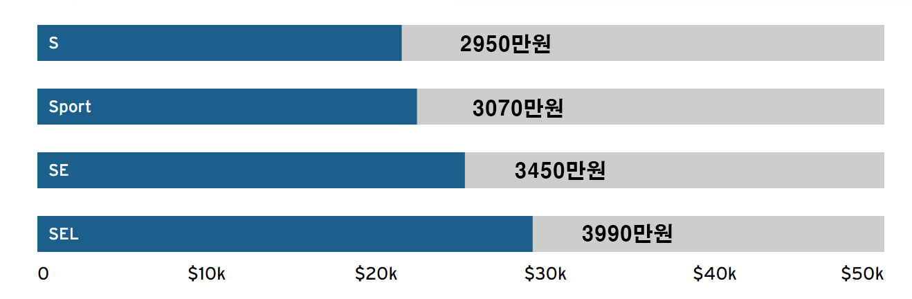 맞춤형 주변 실내 조명, 무선 장치 충전 및 통풍이 잘되는 앞좌석과 같은 주요 콘텐츠는 가장 비싼 모델을 위해 예약되어 있습니다.