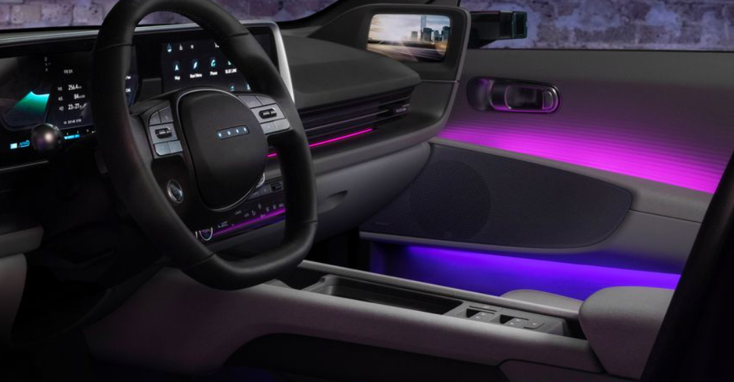 공간은 아이오닉 5와 유사하게 현대적이고 미니멀한 미학을 보여주며 평평한 바닥은 내부 공간의 느낌을 돕습니다.