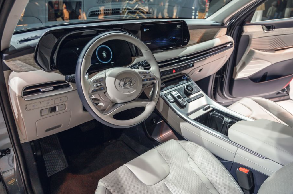 팰리세이드의 계기판에는 고해상도 12.0인치 인포테인먼트 디스플레이, 재설계된 스티어링 휠, 업데이트된 실내 장식 옵션이 있습니다.