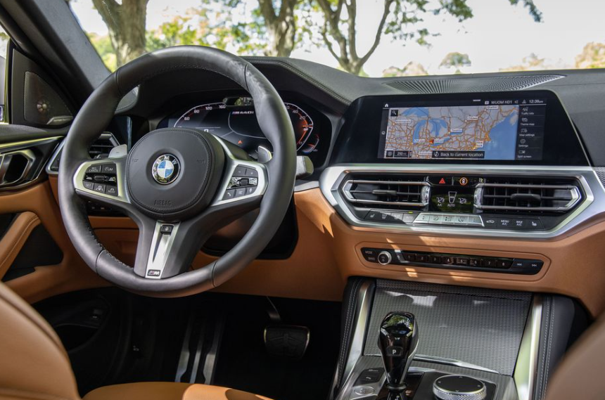대시보드 레이아웃, 내장재 및 기본 컨트롤은 4도어 BMW 3시리즈와 동일해 보이지만 BMW 4시리즈의 낮은 루프라인이 덜 넓은 느낌을 줍니다.