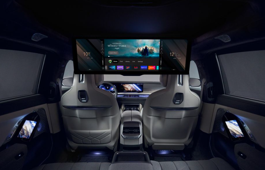 천장에서 떨어지는 대형 31.3인치 화면 을 갖춘 뒷좌석 엔터테인먼트 시스템도 있으며 차량의 5G 셀룰러 연결을 통해 넷플릭스, 훌루, 유튜브와 같은 스트리밍 서비스에 액세스할 수 있습니다.