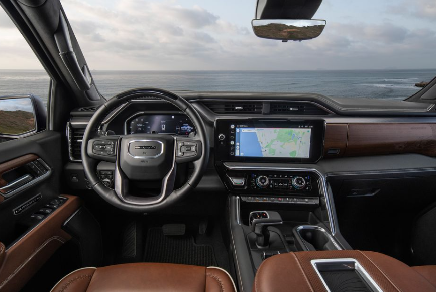 최대 등급은 13,200파운드입니다. 계속해서 747을 견인하십시오. Sierra의 사용 가능한 13.4인치 터치스크린이 인상적이지만 내부의 나머지 부분은 불행하게도 재질이나 품질 면에서 최고 사양 Ram 1500 의 객실의 풍부한 느낌과 일치하지 않습니다.