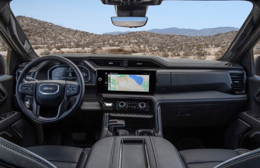 대부분의 시에라 1500에는 트럭의 인포테인먼트 시스템이 실행되는 13.4인치 터치스크린이 있습니다.