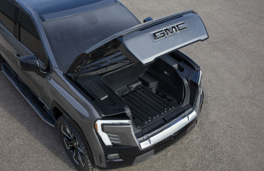 또한 휘발유 엔진이 일반적으로 가는 공간에 전면에 큰 "프렁크"가 있습니다.