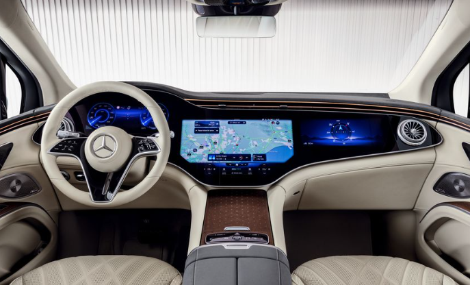 최대한의 극장을 위해 EQS SUV는 메르세데스 벤츠의 매혹적인 56인치 하이퍼스크린을 장착할 수 있으며, 이는 대시보드의 폭을 가로질러 뻗어 있습니다.