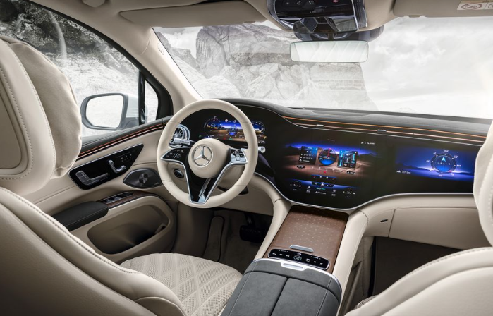 내부에서 벤츠 EQS SUV는 현대의 메르세데스 벤츠 모델을 정의하는 풍부한 재료와 첨단 장비를 갖추고 있습니다.
