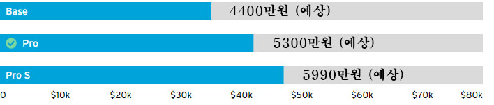 저비용 기본 모델도 2023년 라인업에 합류할 것으로 예상되며 약 4천400만원부터 시작을 예상합니다.