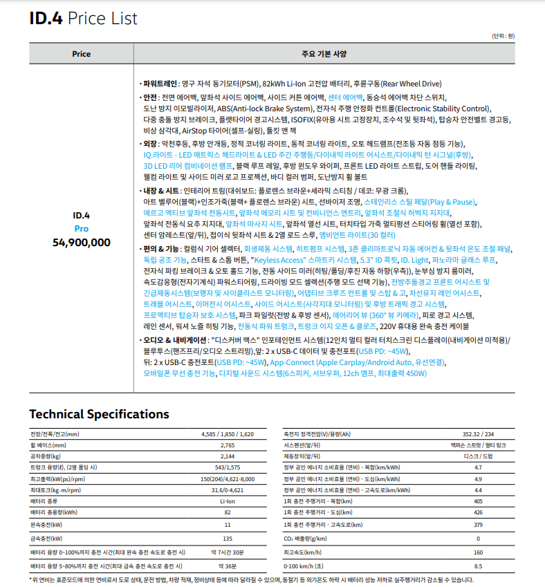 ID4 pro 옵션이 가장 좋은 가성비를 자랑할 것 입니다.