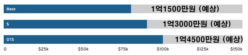 최고급 GTS 트림은 거의 확실히 1억 4천만원대가 될 것입니다.