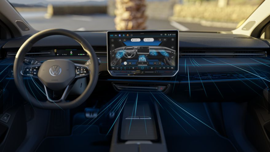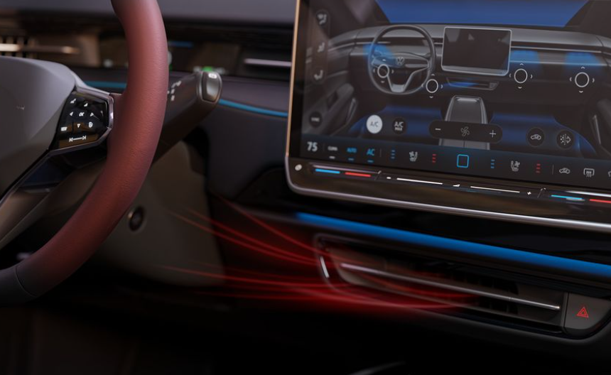 차량 내부의 모든 세부 사항이 아직 공개되지는 않았지만 폭스바겐은 내부 전체에 공기 흐름을 더 잘 분산시키는 에어 벤트 디자인이 특징이라고 밝혔습니다.