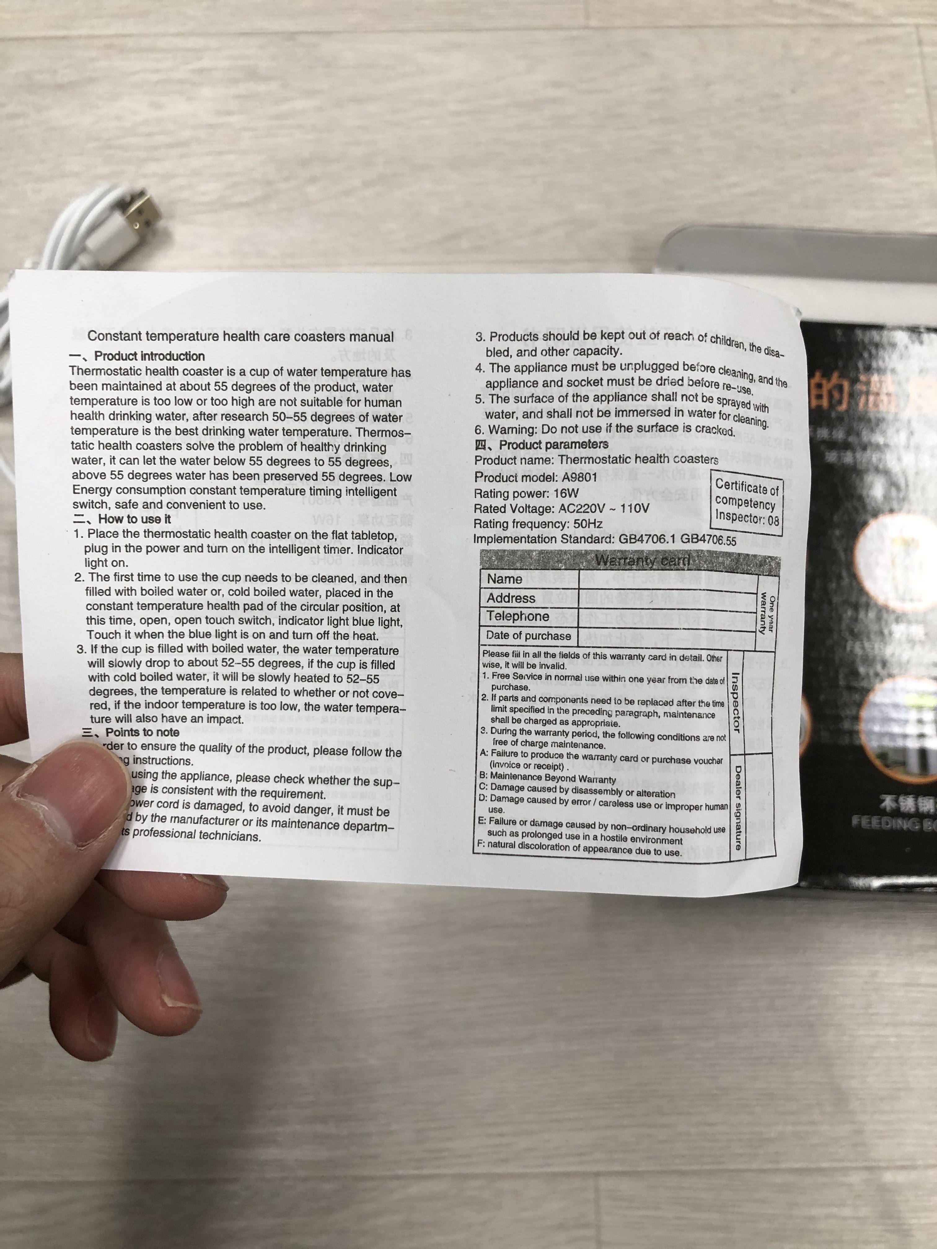 이렇게 개봉하면 안에는 컵받침 패드와 usb연결선이 있습니다!. 그리고 사용설명서가 있는데...